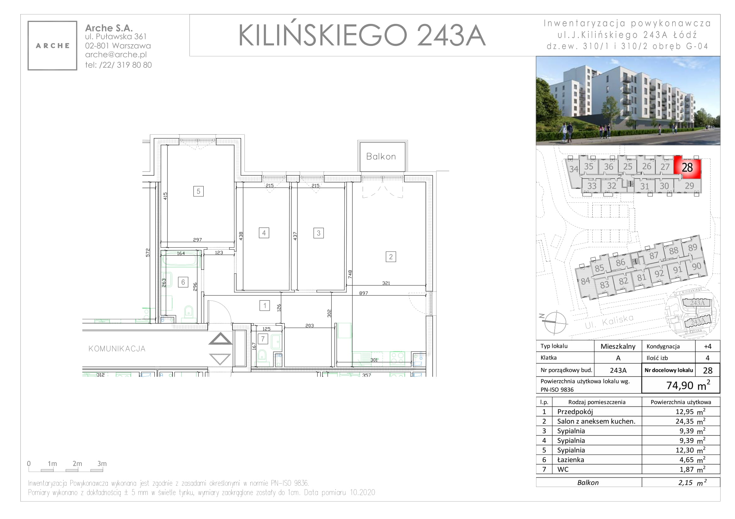 „Słoneczne Kilińskiego 243” to kameralne osiedle mieszkaniowe powstałe na słonecznej działce między ulicami Kilińskiego 243a a ulicą Kaliską w dzielnicy Górna, dzielnicy, która właśnie zaczyna swoją rewitalizację. To wielobryłowy, wielorodzinny budynek ze 144 mieszkaniami o pow. od 37 do 75 m2 wzbogaconymi balkonami, loggiami, tarasami i z usługami w parterze wybudwany na dwupoziomowej płycie garażowej, na dachu której zorganizowano w nietypowy sposób część zieloną, rekreacyjną dla mieszkańców z kreatywnymi urządzeniami dla dzieci. Wszystkie kondygnacje zostały połączone z halą garażową cichobieznymi windami. W hali garażowej zlokalizowno komórki lokatorskie i boxy rowerowe do dyspozycji mieszkańców. Budynek został wykończony w prosty, elegancki i ponadczasowy sposób z elewacjami w delikatnych dwóch kolorach – białym i grafitowym.