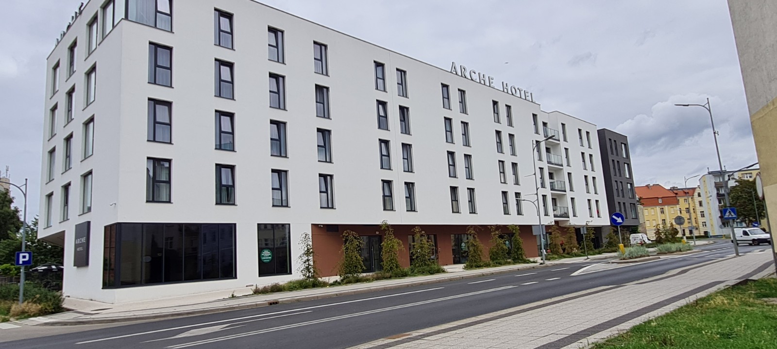 Arche Hotel Piła to nowoczesny obiekt hotelowy, położony w centrum miasta. Wnętrza hotelu zaprojektowane zostały w stylu industrialnym, z charakterystycznymi odkrytymi instalacjami na sufitach i betonowymi dekoracjami. Neutralne barwy ścian przełamane zostały kolorowymi akcentami, co doskonale podkreśla jego loftowy charakter.